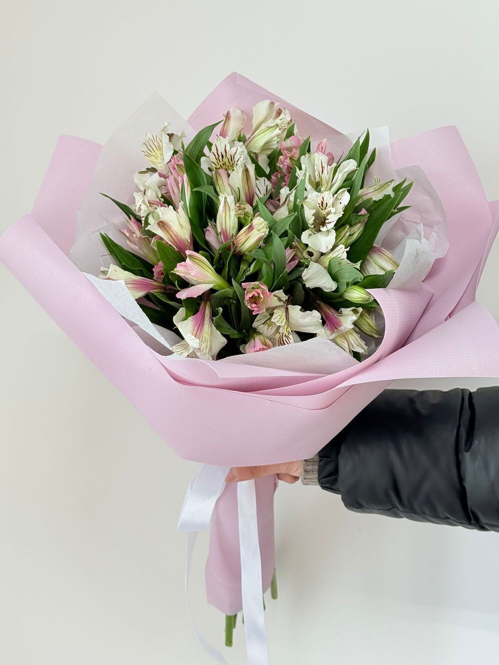 Яркий разноцветный букет из 11 веток альстромерии — радостный и живой. Подходит для подруги, коллеги или в знак благодарности: на языке цветов альстромерия символизирует дружбу и поддержку. Долго стоит в воде.