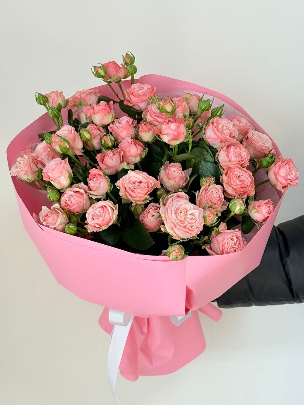 Букет из 15 кустовых роз рефлекс в розовом фоамиране