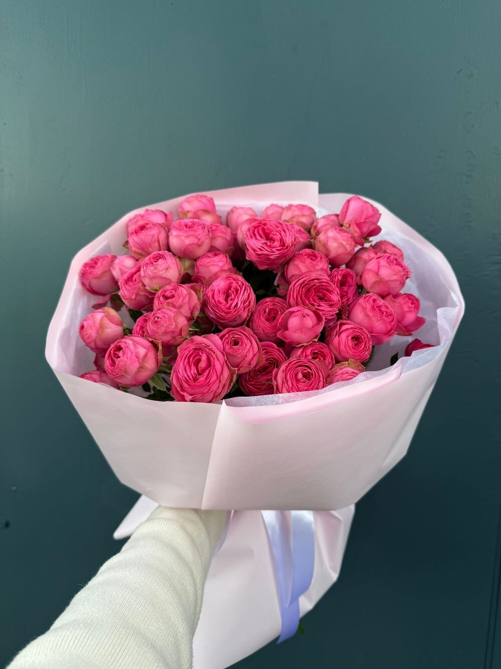 Букет из 35 веток кустовой пионовидной Giselle в розовом фоамиране