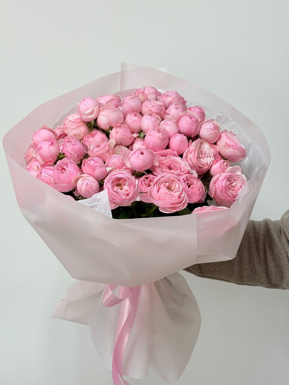 Букет из 35 веток кустовой пионовидной Giselle в розовом фоамиране