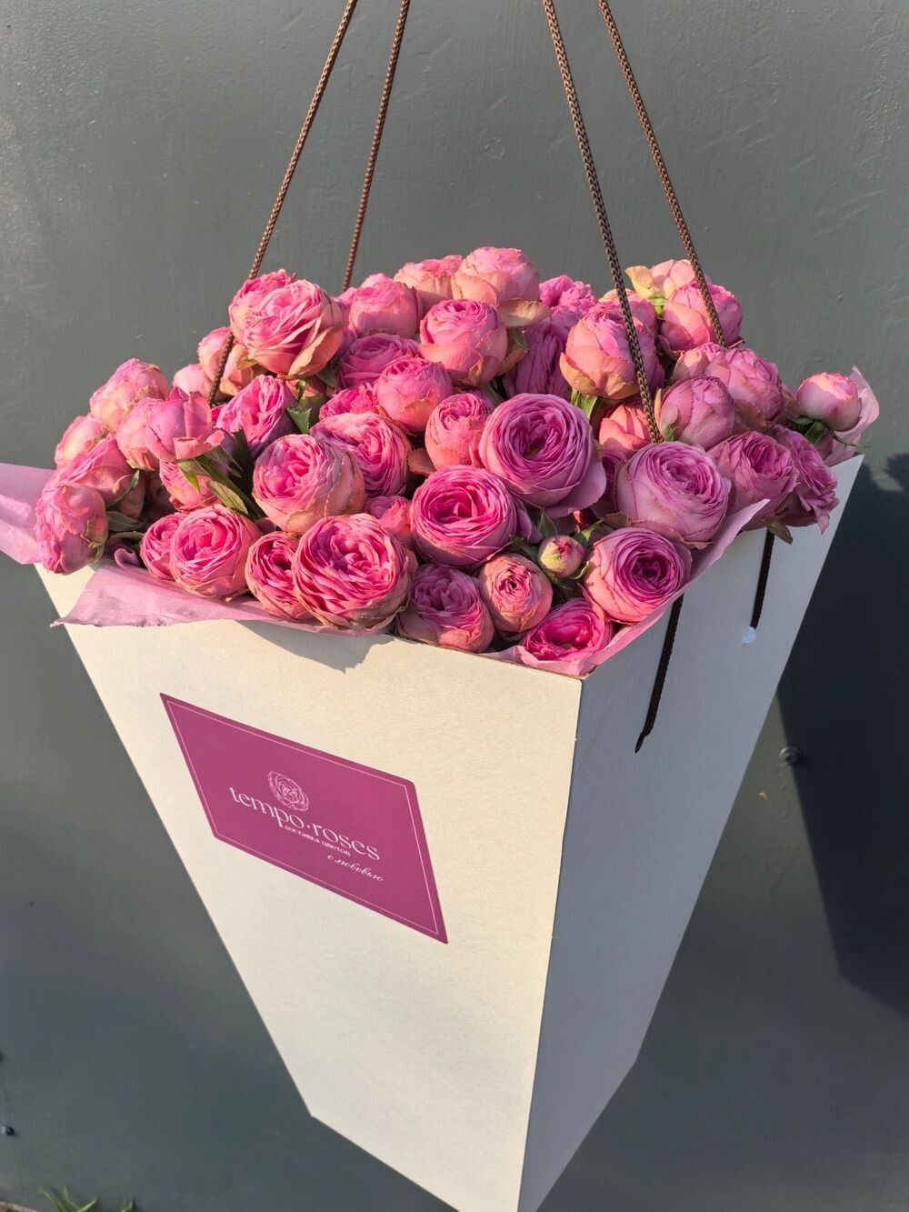 25 кустовых пионовидных роз Giselle в крафт бокале