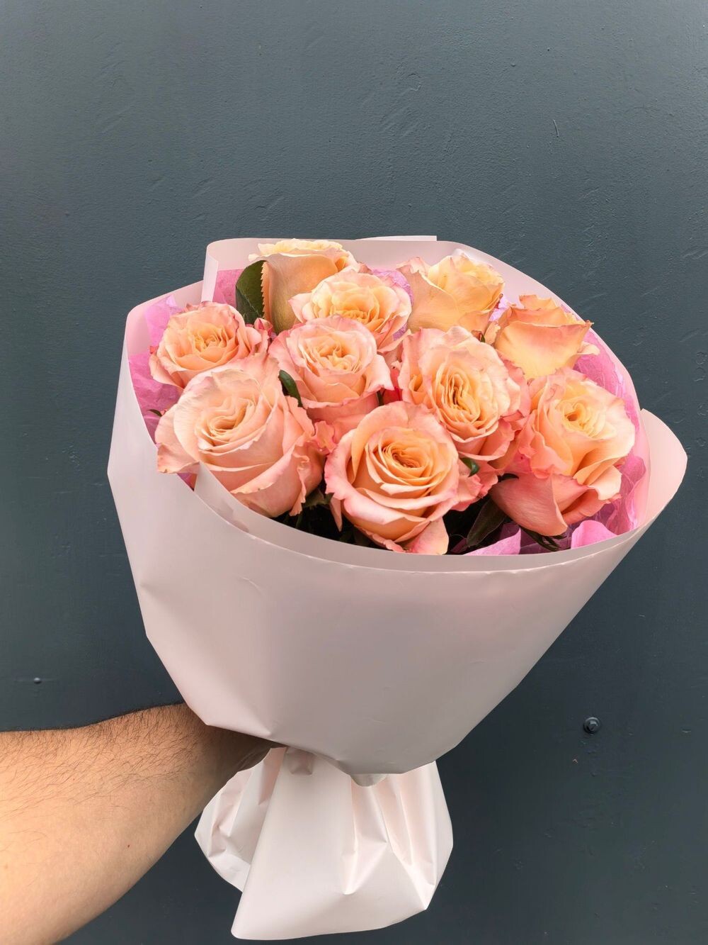 11 мерцающих розовых роз с декором — нежный и романтичный букет для любимой или подруги. Перламутровый отлив лепестков делает его особенно красивым на свету.
