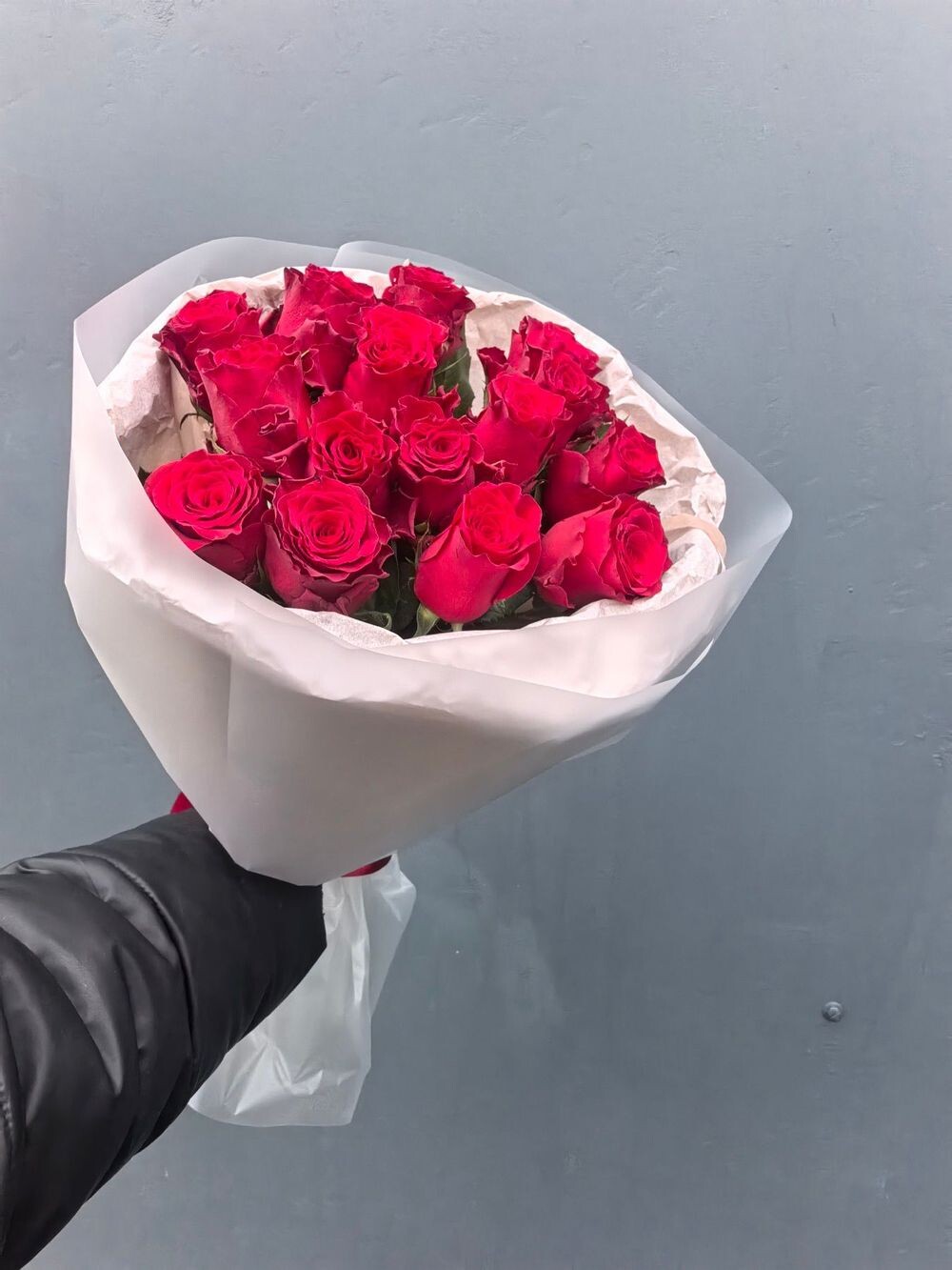 15 свежих кенийских роз в аккуратном оформлении — яркие, стойкие, с хорошим бутоном. Отличное соотношение красоты и цены. Подходит для любого повода.