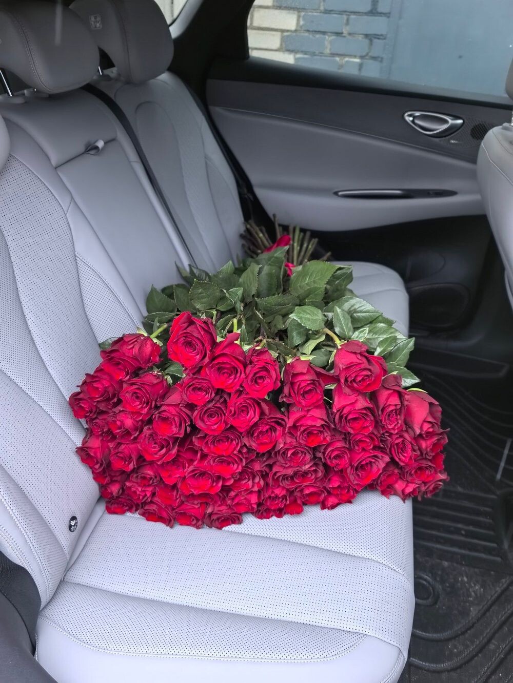 51 роза на метровом стебле — грандиозный и незабываемый подарок. Огромные бутоны на длинных стеблях смотрятся монументально. Для тех случаев, когда хочется поразить по-настоящему.