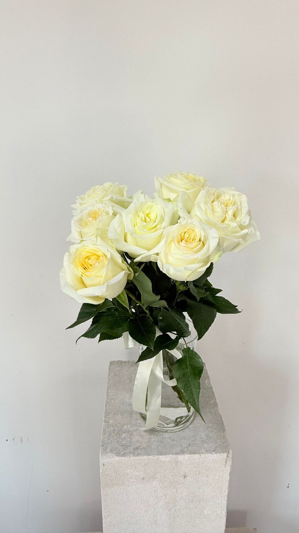 Мягкий и тёплый букетик из 7 пионовидных роз кремово-абрикосового оттенка. Уютный, нежный образ — трогательный подарок без лишней помпы. Доступен в длине 50 и 60 см.