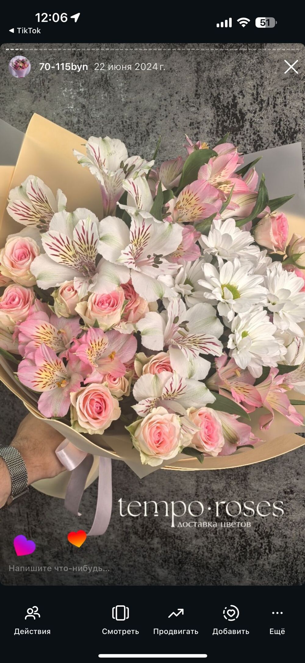 Тёплый и позитивный букет: персиково-розовая кустовая «Гуд Муд» и яркая альстромерия. Радостное и живое сочетание — поднимает настроение с первого взгляда.