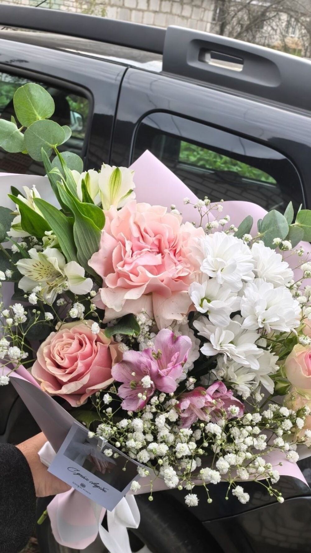 Живой и выразительный авторский букет с продуманным сочетанием цветов и оформлением. Универсальный подарок на любой повод.