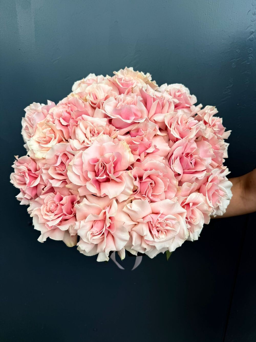 Пышный букет из 25 розовых французских роз. Идеальный выбор для создания впечатления и передачи глубоких чувств.