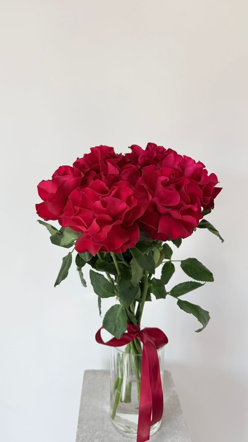 Лаконичный букет из 7 красных французских роз — символ страсти, любви и искренних чувств.