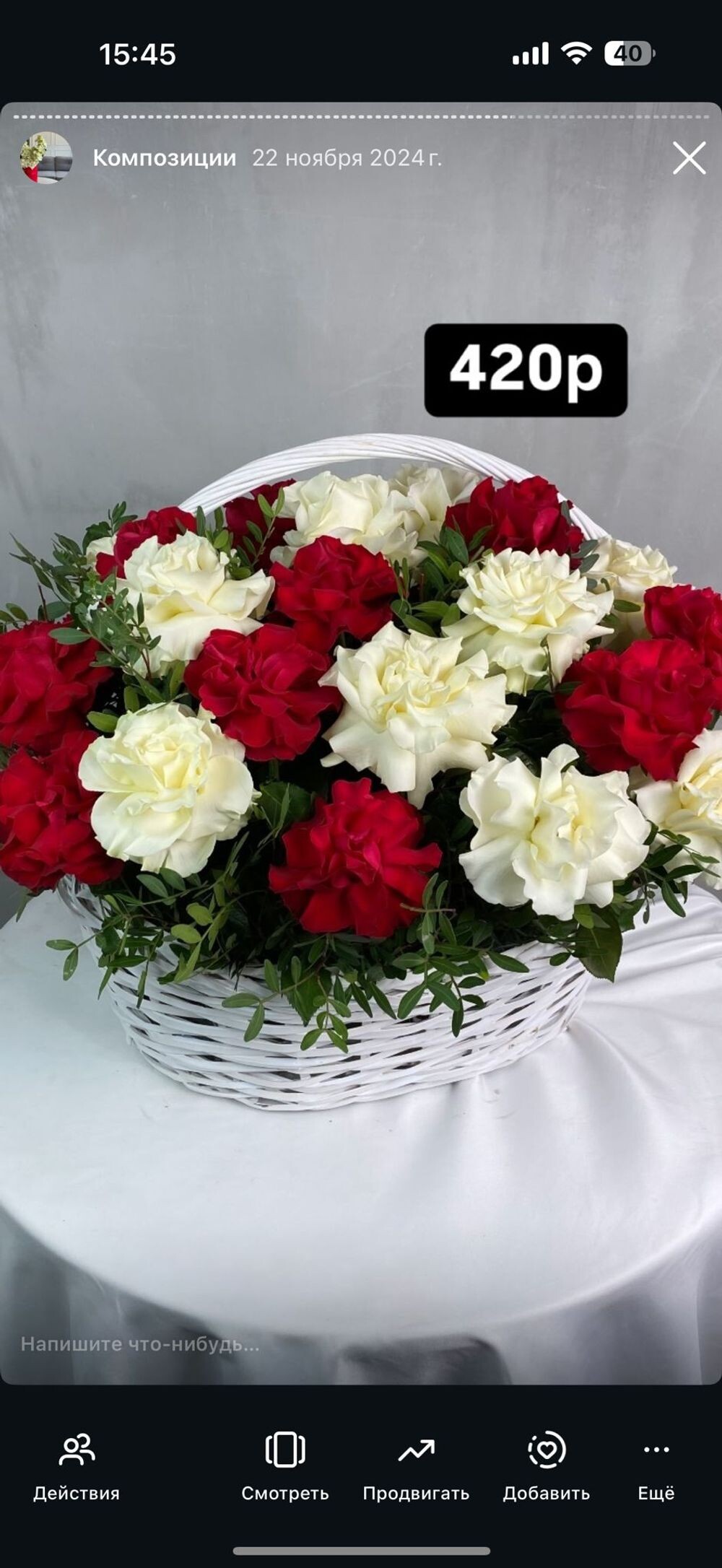 Корзина из 25 французских красные + белые с зеленью