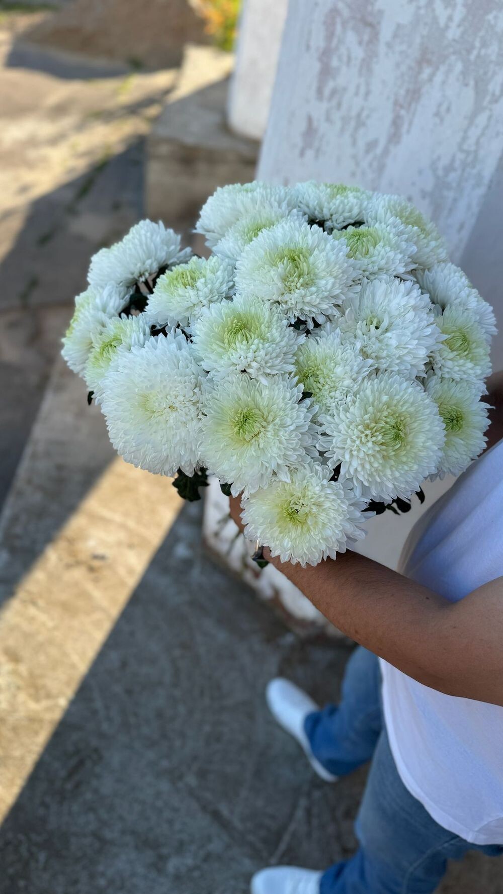 Впечатляющий букет из 21 хризантемы магнум с крупными соцветиями. Выглядит эффектно и солидно.