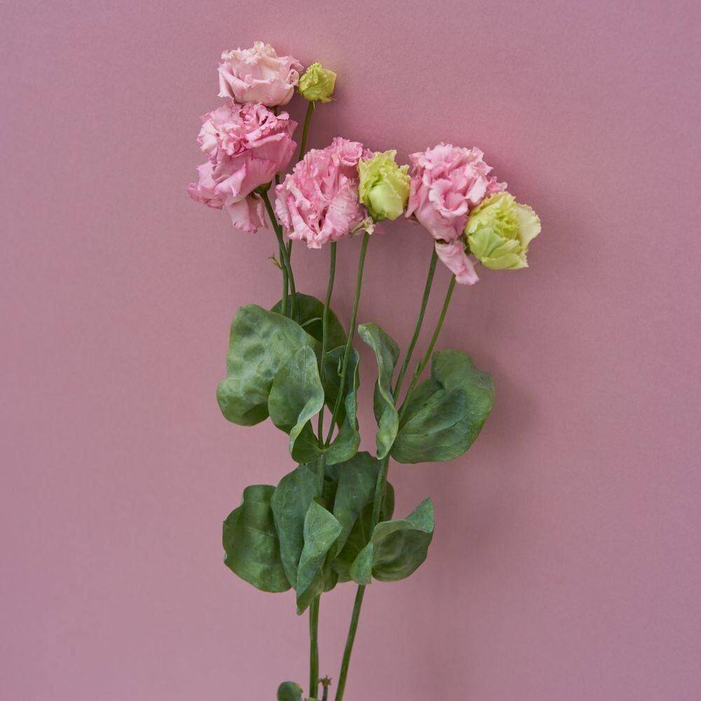 Одна ветка розовой эустомы — нежной и элегантной. Прекрасно сочетается с другими цветами, долго сохраняет свежесть.