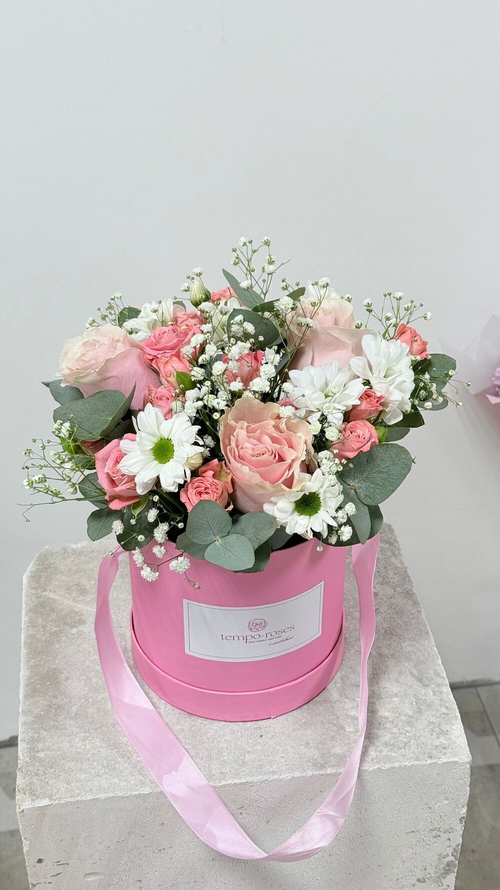 Коробка с гипсофиллой (шляпная)