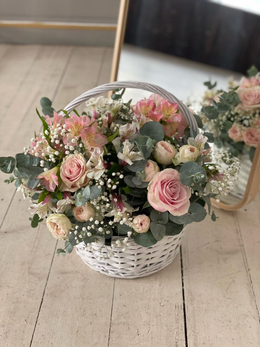 Тёплая и искренняя корзина с цветами — для тех моментов, когда слова найти сложно, а чувства — нет. Весенняя палитра и аккуратное оформление делают этот подарок уместным в любой ситуации: поддержка, благодарность, забота.