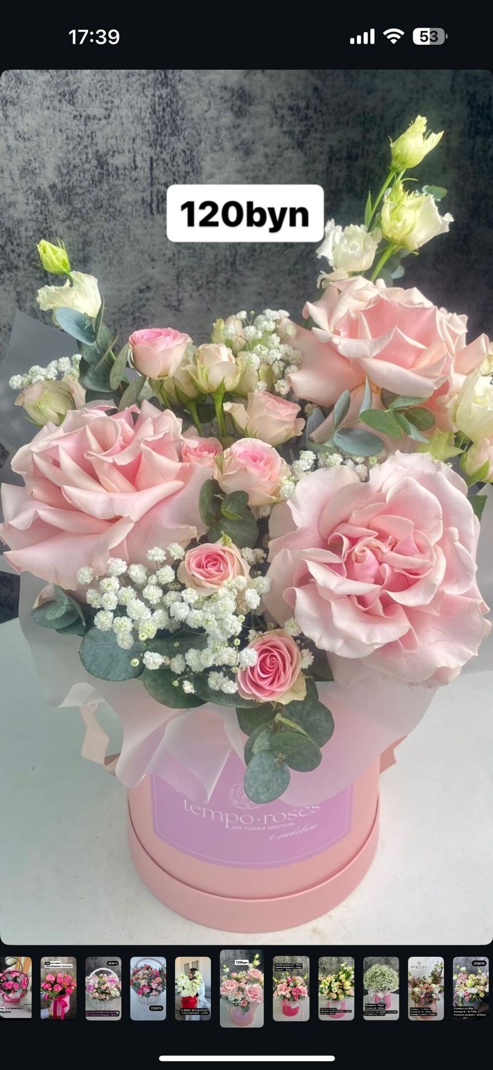 Стильная цветочная композиция в шляпной коробке. Универсальный формат подарка.