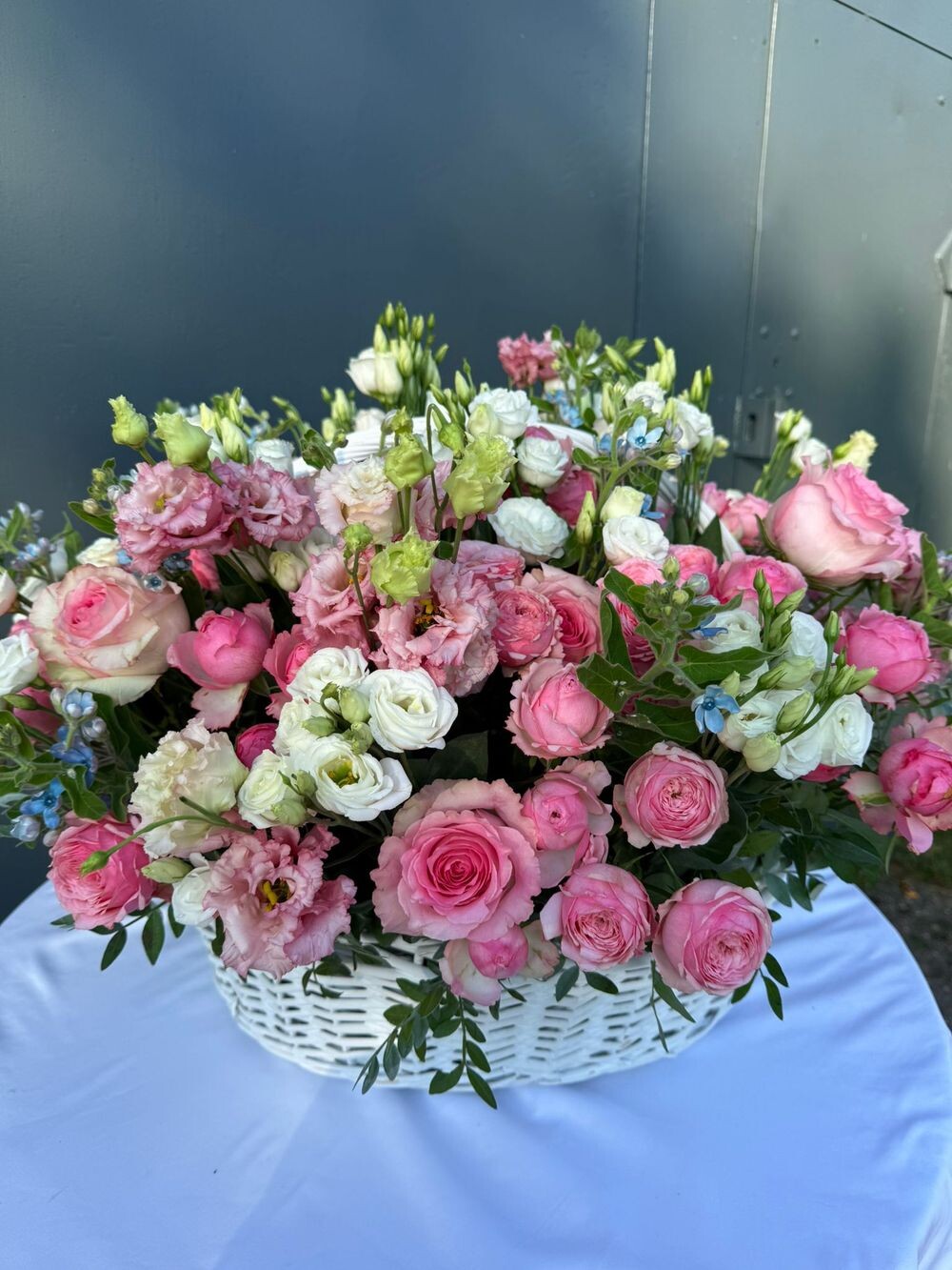 Корзина с французскими и кустовыми пионовидными Мэнсфилд Парк