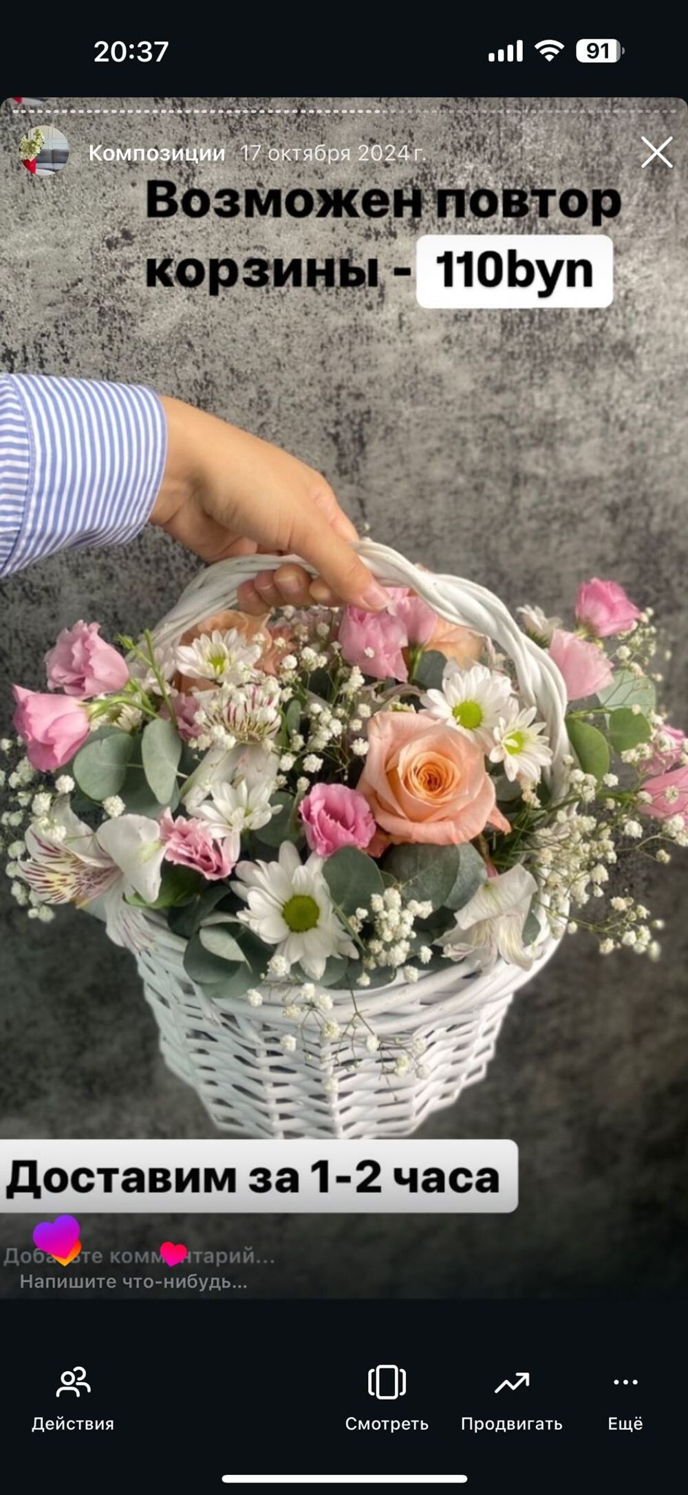 Небольшая, но выразительная корзина с цветами — уютная и приятная во всех смыслах. Хороший выбор, когда хочется порадовать без лишней помпы: просто, искренне и со вкусом.