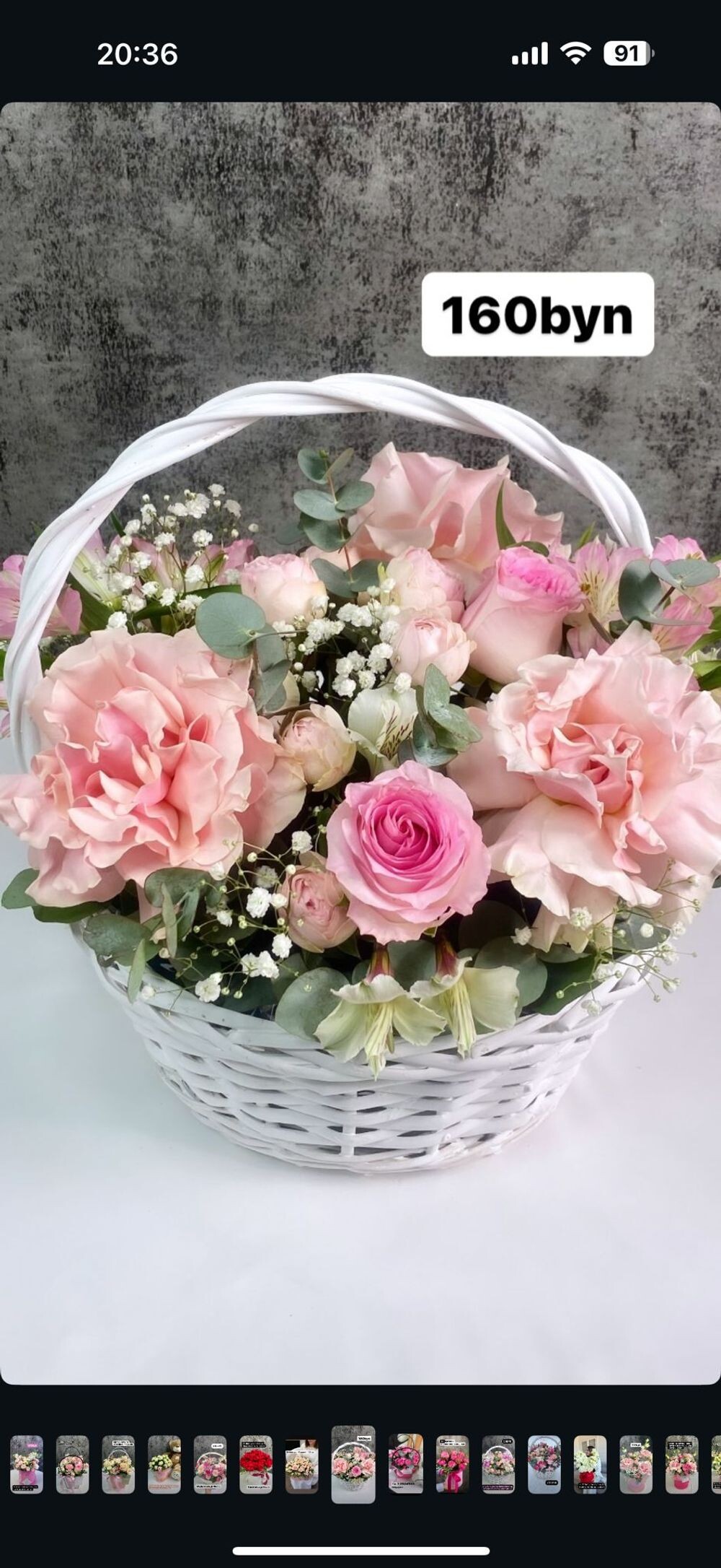 Классическое и беспроигрышное сочетание: ароматные французские розы и пышные пионовидные в одной корзине. Два вида роз с разной формой бутона создают красивый объём и богатый образ. Подходит для любого торжества.