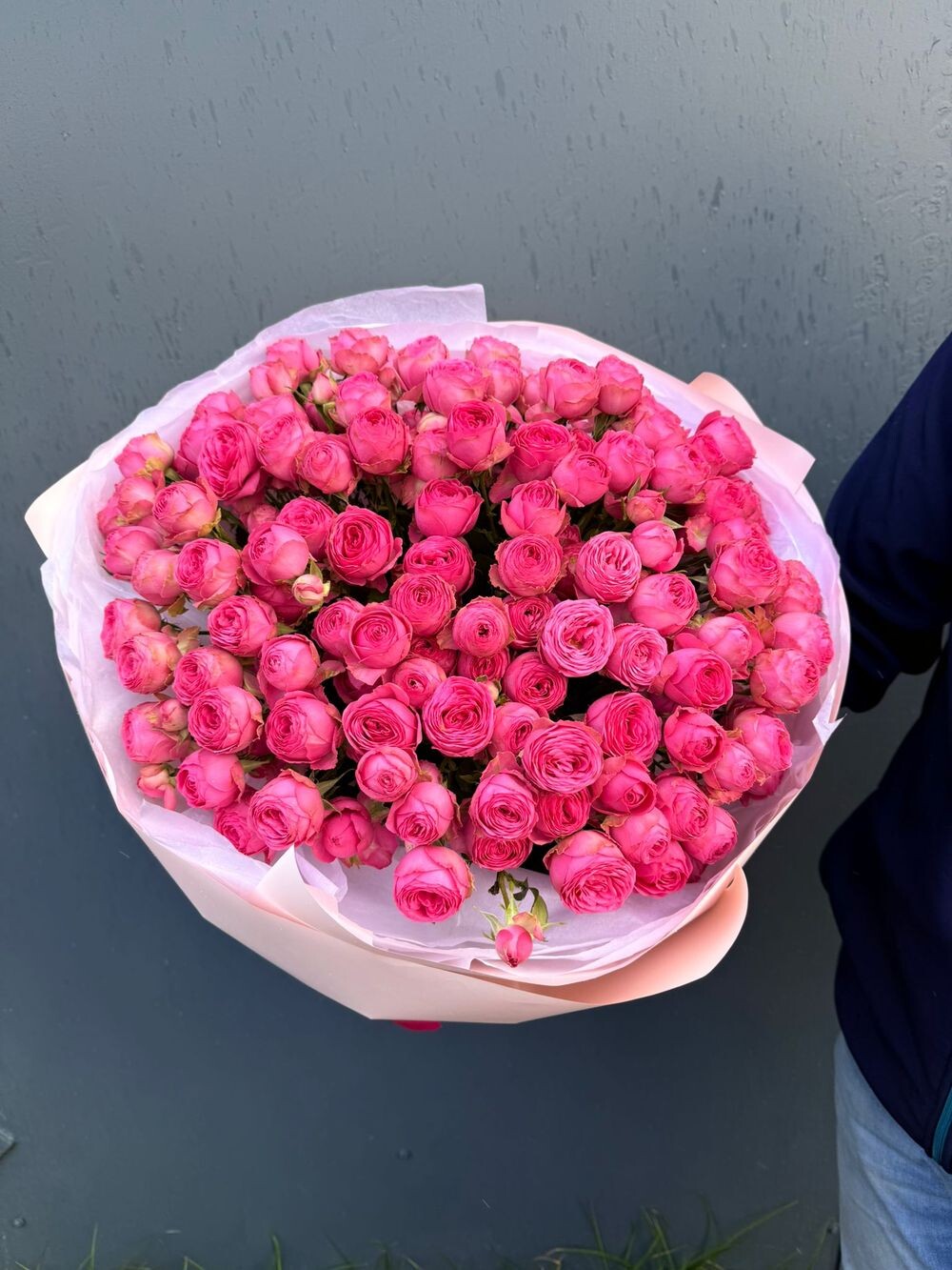 Букет из 35 веток кустовой пионовидной Giselle в розовом фоамиране