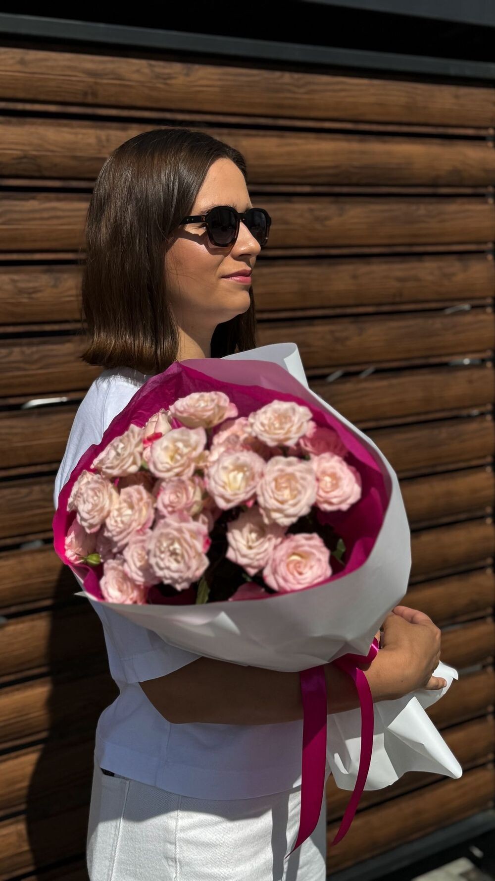 Букет из 15 кустовых роз рефлекс в розовом фоамиране
