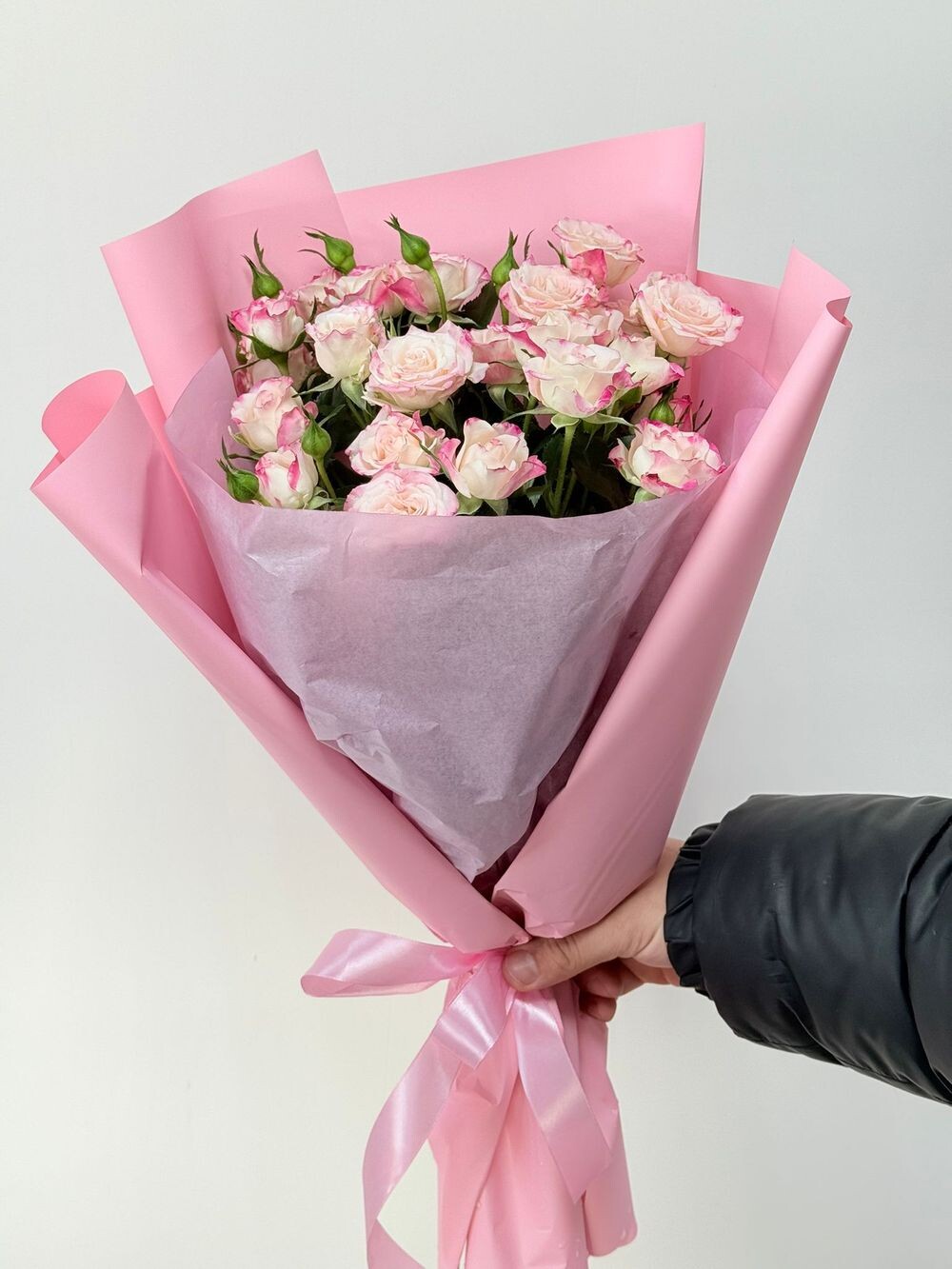 Букет из 15 кустовых роз рефлекс в розовом фоамиране